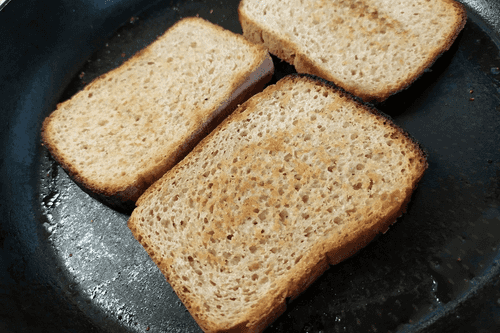 Подрумянить на сухой сковороде кусочки черного хлеба.