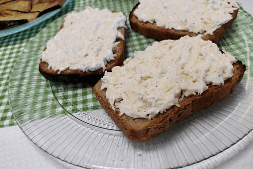 Намазать сырную массу на хлеб.