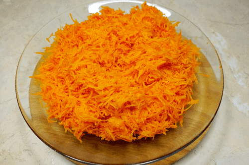 Заранее отварить морковь, очистить, натереть на мелкой терке.
