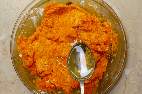 Добавить в морковь 1 столовую ложку растительного масла, перемешать.