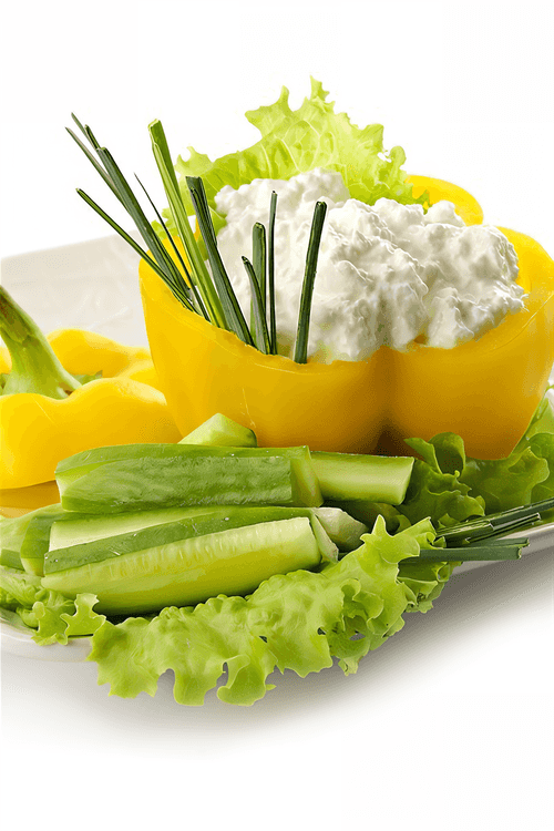Творожный салат — это нежное и ароматное блюдо, гармонично сочетающее свежесть овощей и мягкость творога. Его корни уходят в традиции европейской кухни, где ценится легкость и натуральность ингредиентов. Чеснок придает пикантность, а укроп наполняет салат свежими травяными нотками. Особенность этого блюда — его яркая подача: сладкий перец выступает естественным контейнером для нежного творожного крема. Творожный салат прекрасно подойдет как легкая закуска, дополнение к основным блюдам или самостоятельное угощение. Его текстура воздушная, вкус — сбалансированный между сливочной мягкостью и овощной свежестью. Идеален для летних вечеров и праздничных столов!