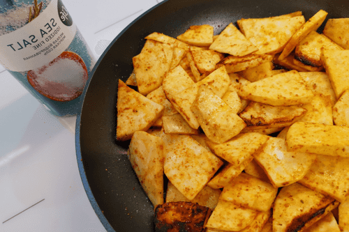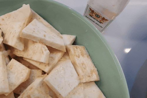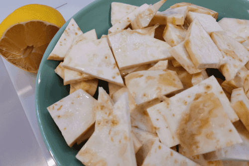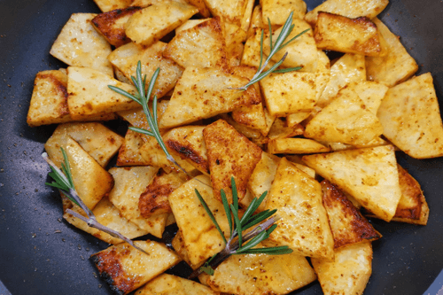 Жареный корень сельдерея — это изысканное блюдо европейской кухни, которое превращает простой овощ в ароматный деликатес. Сельдерей, обладающий слегка ореховым привкусом, после жарки приобретает насыщенный карамельный оттенок. Лимонный сок подчеркивает его свежесть, а утиный жир придаёт бархатистую текстуру. Пряные специи — куркума, аджика, чеснок — раскрывают глубину вкуса, создавая пикантную композицию. Ароматный розмарин добавляет утончённые древесные нотки. Это блюдо идеально подходит как гарнир к мясу или самостоятельное угощение для гурманов. Обжаренный до золотистой корочки сельдерей соблазняет своим хрустом, а его насыщенный вкус делает его настоящей гастрономической находкой. Прекрасный выбор для тех, кто ищет оригинальные способы насладиться овощами.