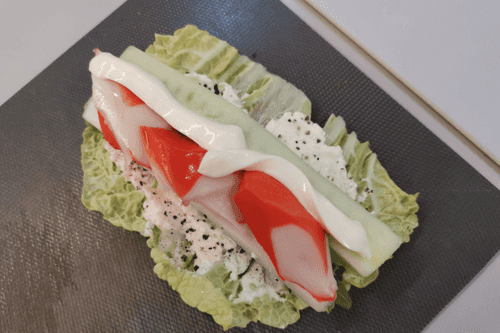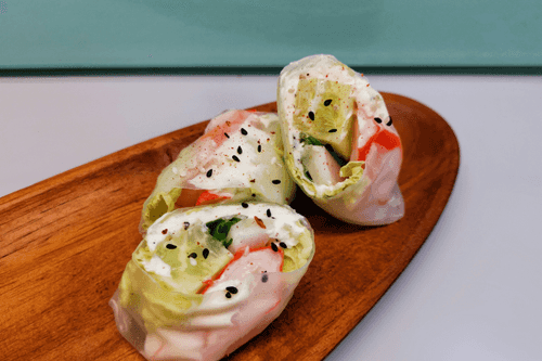 Спринг-ролл с крабовыми палочками — это легкое и утонченное блюдо паназиатской кухни, которое объединяет свежесть овощей и нежную текстуру морепродуктов. Этот рецепт берет свое вдохновение из традиционных вьетнамских спринг-роллов, но адаптирован под европейские вкусы. Сочетание хрустящих огурцов, пикантной руколы и нежного творожного сыра придает блюду свежесть, а крабовые палочки добавляют мягкий морской оттенок. Рисовая бумага делает текстуру нежной и обволакивающей, создавая гармоничный баланс вкусов. Эти роллы идеально подходят как для легкого перекуса, так и для праздничного стола, а кунжут придает им завершенный аромат. Их можно подавать с соевым соусом или легким лимонным дипом, создавая уникальное гастрономическое впечатление.