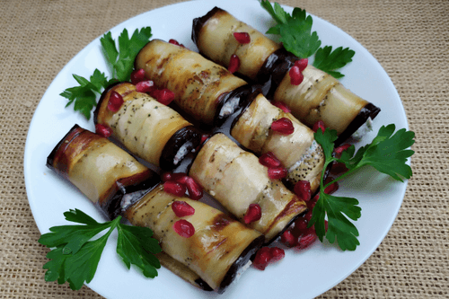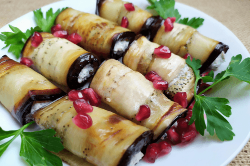 Рулетики из баклажанов с творожным сыром и грецкими орехами — яркое блюдо кавказской кухни, сочетающее в себе мягкость баклажана, нежность творожного сыра и насыщенность орехов. Это изысканное угощение берет свое начало в традициях Кавказа, где баклажаны часто используют в закусках и горячих блюдах. Их сладковато-дымный вкус великолепно дополняется сливочной текстурой сыра и хрустящей ореховой ноткой. Поджаренные до золотистого цвета ломтики баклажана оборачиваются вокруг пикантной начинки, создавая гармонию вкусов и ароматов. Особую свежесть блюду придаёт зелень, а зерна граната добавляют лёгкую кислинку и праздничный вид. Эти рулетики идеальны для торжественного стола или в качестве изысканной закуски, которая неизменно радует гостей своим утонченным вкусом и элегантной подачей.