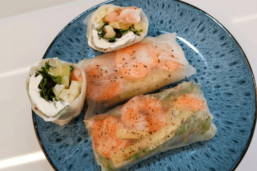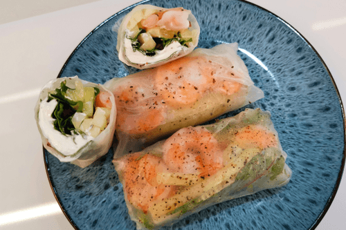 Спринг-роллы с креветками – это лёгкое и изысканное блюдо паназиатской кухни, которое покоряет своей свежестью и балансом вкусов. Эти роллы родом из Вьетнама, где их традиционно подают с ароматным соусом, создавая идеальное сочетание хрустящей текстуры и нежности морепродуктов. Тонкие листы рисовой бумаги оборачивают в себе сочные креветки, хрустящий огурец, пикантную руколу и нежный творожный сыр, который придаёт им особую кремовую текстуру. Добавление мангольда и щепотки черного перца усиливает вкусовую палитру, делая блюдо по-настоящему многогранным. Идеальные для лёгкого перекуса или изысканного ужина, эти роллы можно подавать с различными соусами, подчеркивая их натуральный вкус и свежесть ингредиентов.