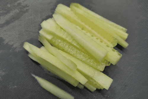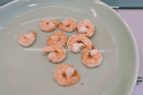 Креветки замочить в кипятке на 2–3 минуты. Затем слить воду.