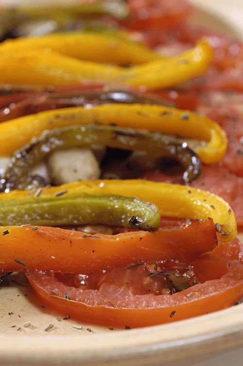 Сладкий перец, тушенный с чесноком и чили