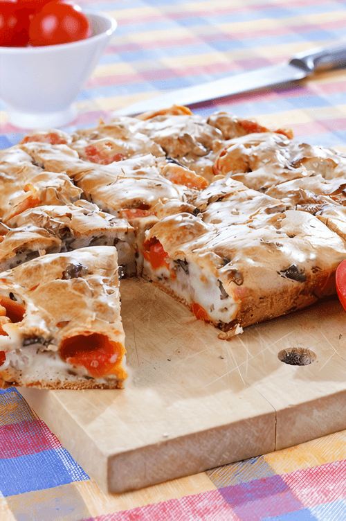 Слоеный рулет со сладким перцем – это гармония вкусов и текстур, воплощённая в элегантной закуске. Его корни уходят в европейскую кухню, где сочетание воздушного теста и насыщенной начинки всегда ценилось. Яркие сладкие перцы придают блюду свежесть и сочность, а пикантная салями и сыр добавляют насыщенности. Нежное слоеное тесто, пропитанное ароматами начинки, становится золотистой и хрустящей после запекания. Этот рулет идеально подходит как для праздничных застолий, так и для уютных домашних вечеров. Его удобно подавать порционными ломтиками, а богатый вкус делает его отличным дополнением к бокалу вина. Простота приготовления и эффектная подача делают его фаворитом среди закусок – легким, но впечатляющим дополнением к любому столу.