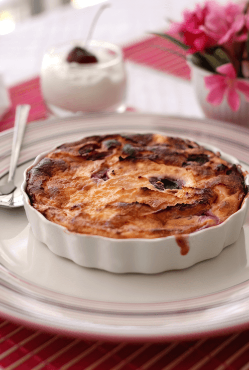 Перелейте смесь в приготовленную форму и поставьте ее в неглубокую емкость, которая годится для использования в духовке, с горячей водой, налитой так, чтобы внешние стенки формы для запекания были закрыты наполовину. Поставьте в духовку и выпекайте 30-35 минут до тех пор, пока запеканка не станет румяной.