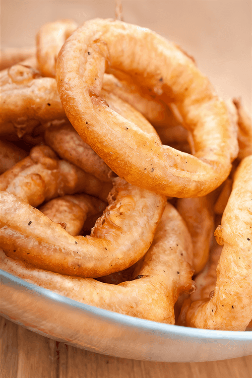 Золотистые луковые кольца в панировке