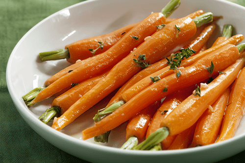 Поставьте в духовку на 25-30 минут, иногда помешивая, пока морковь не станет мягкой. Подавайте горячей или комнатной температуры.