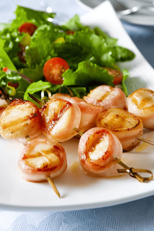Маринованные морские гребешки на шпажках из розмарина на гриле – это изысканное блюдо европейской кухни, сочетающее свежесть морепродуктов с ароматом трав. Гребешки, пропитанные оливковым маслом и розмарином, приобретают нежный, слегка сладковатый вкус с тонкими древесными нотами. Жареные на гриле они становятся мягкими и сочными, а дымчатый аромат углей лишь усиливает гастрономическое удовольствие. Исторически морские гребешки считались деликатесом прибрежных регионов Европы, где их готовили с минимальным количеством специй, чтобы сохранить естественный вкус. Подавать это блюдо можно с легким белым вином и свежим салатом, делая его идеальным вариантом для летнего ужина под открытым небом.