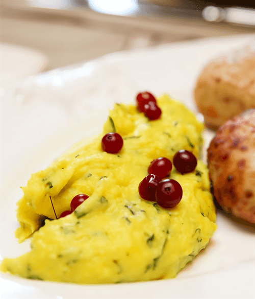 Нашинковать зелень и перемешать с картофельным пюре. Заправить сметаной.