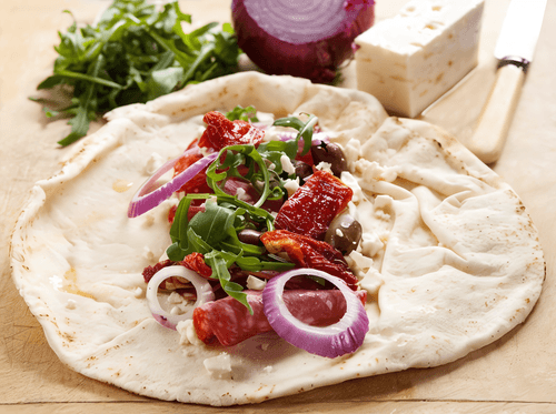 Фахитас с разноцветными перцами, кабачками и рукколой