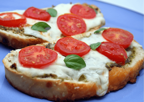 Горячие бутерброды с брынзой, помидорами и зеленью
