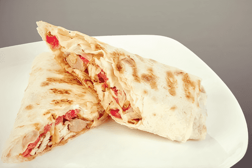 Горячий ролл-сэндвич с курицей, баклажанами и ореховым соусом