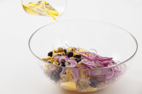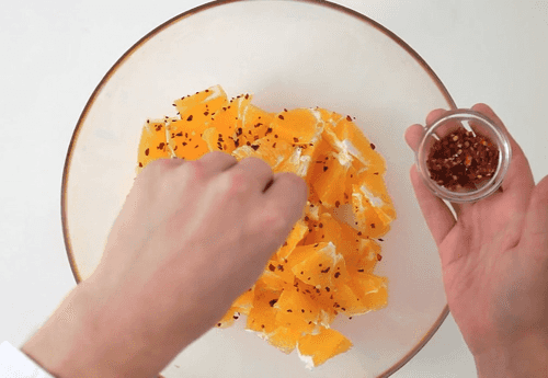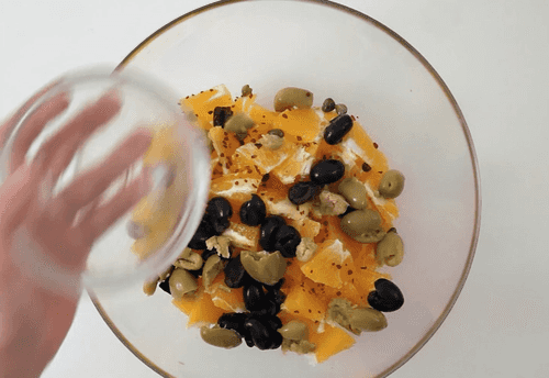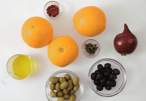 Представляем вам оригинальный салат, в котором апельсины удивительным образом придают овощной оттенок. Если у вас есть красные апельсины, они сделают блюдо еще более вкусным. Эта быстрая и простая закуска была предложена нам Марко Черветти, бренд-шефом холдинга Fozzy в Киеве.