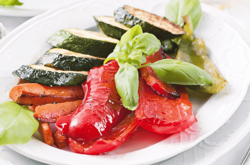 Цукини, тыква и перцы на гриле со свежим базиликом