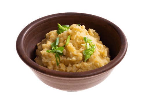 Согласно преданиям, гороховая каша имеет свои корни в Польше и восходит к Средневековью, когда она пользовалась популярностью у Сигизмунда Третьего. Ранее это блюдо готовилось в печи с длительным томлением, а затем подавалось на королевский стол вместе с различными копчеными изделиями, включая бекон. За время, прошедшее с тех пор, принцип приготовления остался практически неизменным: горох следует замочить на ночь, а затем томить на медленном огне. В завершение, к готовой каше добавляют разнообразные несладкие начинки, в данном случае — лук.