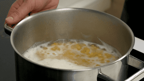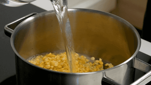 Довести горох до кипения, уменьшить огонь и варить, пока горох полностью не разварится, около 1,5 часа.