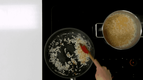 В сковороде разогреть растительное масло и пожарить лук до золотистого цвета, на это уйдет 4 минуты.