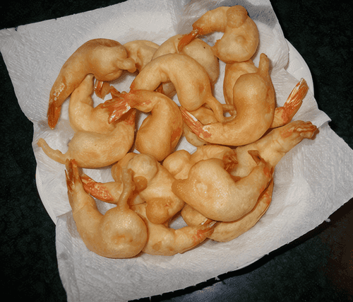 Обжаренные креветки выкладывать на бумажное полотенце, чтобы избавиться от лишнего жира.