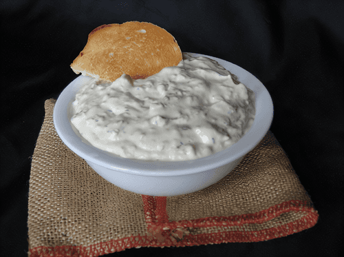 Подавать с поджаренным в духовке хлебом или нарезанными свежими овощами (огурцы, морковь, сельдерей, редис).
