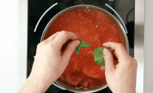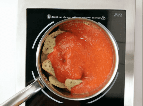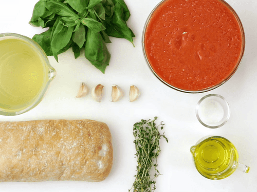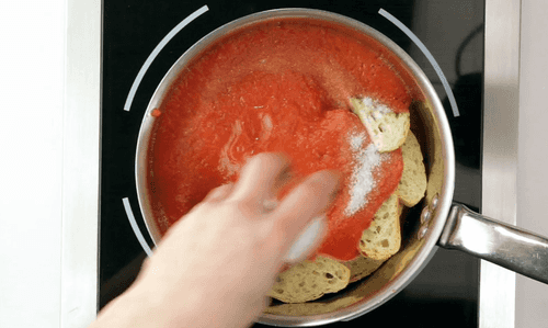 Если у вас остался вчерашний хлеб, можно воспользоваться итальянским способом и приготовить паппа-аль-помодоро. Начните с того, что нарежьте хлеб на кусочки и затем добавьте к нему овощной бульон, смешанный с протертыми помидорами. Не спешите: готовьте на медленном огне до полного растворения хлеба. Подавайте это блюдо как самостоятельное угощение, используйте в качестве соуса для пасты или намазывайте на тосты. В нашей интерпретации мы добавим ароматный базилик для насыщенного вкуса.