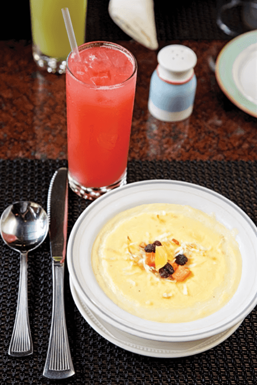 Мамалыга по-ямайски – это настоящее воплощение карибского уюта. Каша, в основе которой кукурузная мука, приобретает насыщенный кремовый вкус благодаря кокосовому и сгущенному молоку. Легкие пряные ноты корицы и мускатного ореха добавляют ей теплоту, а ванильная эссенция завершает ароматную композицию. Исторически мамалыга ассоциируется с традиционной карибской кухней, где простые ингредиенты превращаются в богатые и утешительные блюда. Подача с цукатами придает ей особую праздничную изысканность, делая идеальным вариантом для завтрака или сладкого перекуса. Ее нежная текстура и сладковатый, но сбалансированный вкус делают кашу универсальной – ее можно есть самостоятельно или сочетать с тропическими фруктами.