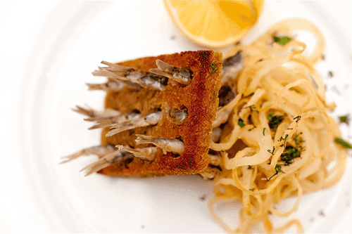 Хамса с луковыми кольцами – это блюдо, которое несет в себе традиции русской кухни, соединяя простоту и насыщенный вкус. Соленая хамса, хрустящий ржаной хлеб и сладковатый карамелизированный лук создают удивительное сочетание текстур и ароматов. История этого блюда уходит в глубину народных традиций, когда рыба была доступным и питательным продуктом. Легкость приготовления делает его идеальным как для домашнего ужина, так и для уютного застолья. Обжаренная в масле рыба приобретает золотистую корочку, а сбрызнутый лимонным соком вкус становится еще ярче. Подача – настоящее произведение кулинарного искусства: ломоть хлеба, пронизанный рыбными тельцами, окруженный ароматными кольцами лука. Это блюдо уносит в атмосферу русских традиций, где простые ингредиенты превращаются в гастрономическое удовольствие.