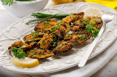 Мидии под корочкой из трав, панчетты и сухарей — истинное воплощение средиземноморского вкуса и утончённости итальянской кухни. Это блюдо восходит к традициям прибрежных регионов Италии, где свежие морепродукты сочетаются с ароматными травами и выдержанными винами. Нежные, сочные мидии готовятся в белом вине, обогащаясь его мягкими нотами, а затем покрываются хрустящей смесью из золотистой панчетты, чеснока, сухарей и трав, создавая гармонию текстур и ароматов. Подрумяненные под грилем, они приобретают аппетитную корочку, которая идеально дополняет их естественную морскую свежесть. Подавать мидии стоит с дольками лимона, который подчеркнёт их вкус. Идеальное угощение для тех, кто ценит изысканные морепродукты и наслаждение каждой нотой итальянской гастрономии.