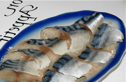 Разделать скумбрию. Нарезать тонкими кусочками.