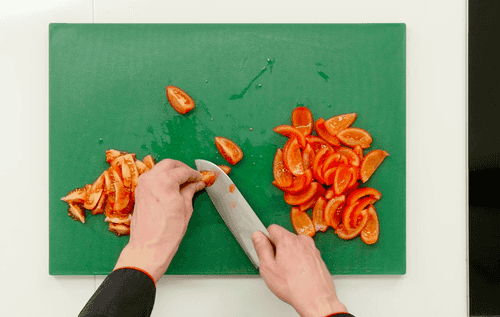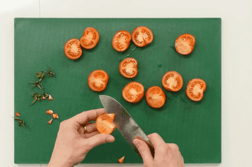 Помидоры избавить от семечек (кожицу можно оставить), иначе в процессе настаивания с лимонным соком помидорная мякоть превратится в кашу.