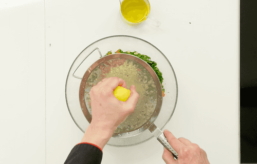 Добавить булгур. Заправить соком лимонов и оливковым маслом.