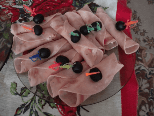 Рулетики из ветчины с сыром и яйцом