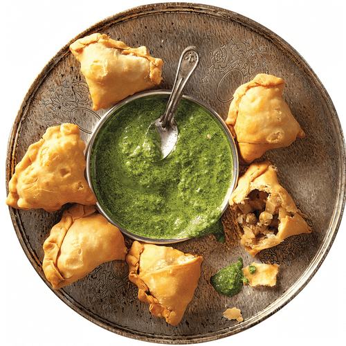 Самоса — один из самых известных и любимых индийских закусок, популярный далеко за пределами Индии. Это хрустящий треугольный пирожок с ароматной начинкой, который с первого укуса раскрывает богатство восточных специй. В этом варианте картофельная начинка, сдобренная имбирем, чили и масалой, дарит согревающий вкус с легкой пикантностью, а дополнение зеленью и лимонным соком придает свежесть. Эти самосы идеально подходят в качестве аппетитной закуски или дополнения к основному блюду, особенно с освежающим йогуртово-травяным чатни. Их можно подавать как горячими, так и теплыми, а хрустящая золотистая корочка делает их неотразимыми на любом столе.