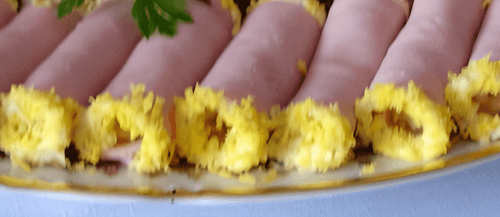 Яйца сварить вкрутую. Размять вилкой в крошку.