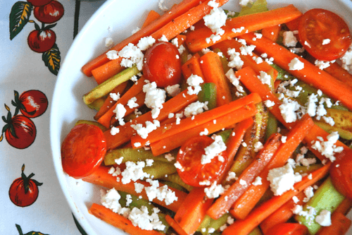 Все выложить на тарелку и посыпать фетой, предваритеьно раздавленной вилкой.