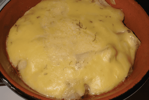 Отварить фенхель в воде до мягкого состояния. Выложить на обмазанное маслом блюдо.
