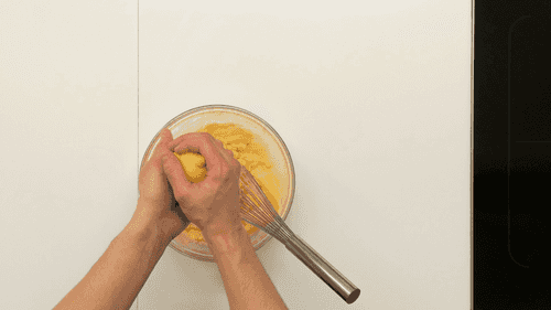 Почти в самом конце выжать половину лимона, не переставая взбивать. Цель — кремообразная масса светло-розового цвета.