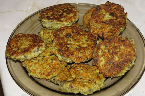 Слепить из получившейся смеси котлетки и обжарить с двух сторон до золотистой корочки на сковороде.