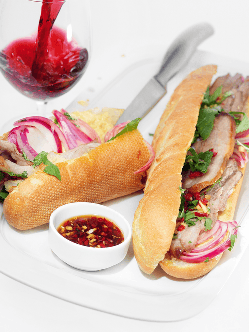 Этот сэндвич — настоящая симфония вкусов, вдохновленная уличной кухней Америки с азиатскими нотками. Сочная свиная брюшина, маринованная в пряном соусе с базиликом, кинзой и мятой, приобретает насыщенный аромат и нежную текстуру после долгого томления в духовке. Хрустящий багет, поджаренный до золотистой корочки, становится идеальной основой для пикантного сочетания майонеза с лаймом, маринованного лука и свежих овощей. Морковь и редька добавляют легкость и свежесть, а острый перец привносит приятную остроту. Этот сэндвич — не просто блюдо, а гастрономическое приключение, в котором переплетаются насыщенность специй и баланс текстур. Прекрасно подходит для душевного обеда или уличной трапезы, оставляя яркое вкусовое впечатление.