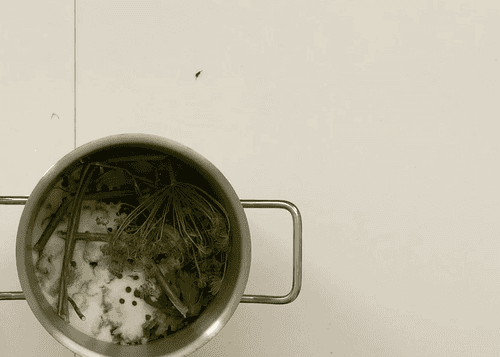 Добавить в кастрюле кайенский перец уксус, стебли укропа, специи для маринада.