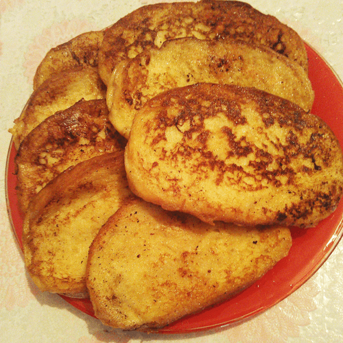 Яйца взбить венчиком с молоком, посолить. Батон нарезать ломтиками и хорошо пропитать яично-молочно смесью.