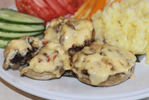 Нафаршировать полученной смесью шляпки шампиньонов.