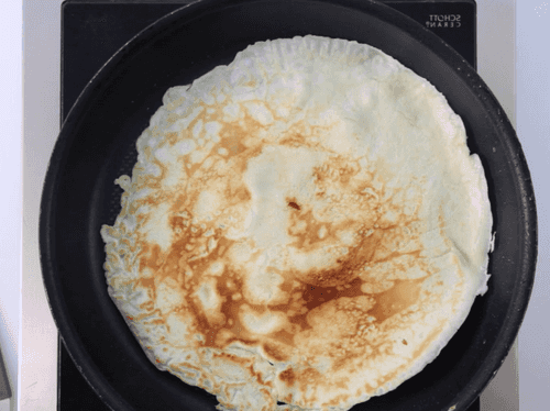 Обжарить блинчики на большой сковороде, следя за тем, чтобы они вышли тонкими и не подгорели. Полностью остудить.