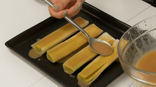 Лук-порей сам по себе уже является вкусным овощем, но его маринование в сочетании с яйцом превращает его в эффектную закуску. Тонкие слои лука-порея, после термической обработки, способны быстро впитать ароматы, которые находятся рядом. Таким образом, процесс маринации будет происходить практически мгновенно во время подачи блюда. Яйцо добавляется для того, чтобы уравновесить природную остроту лука и кислотность маринада.