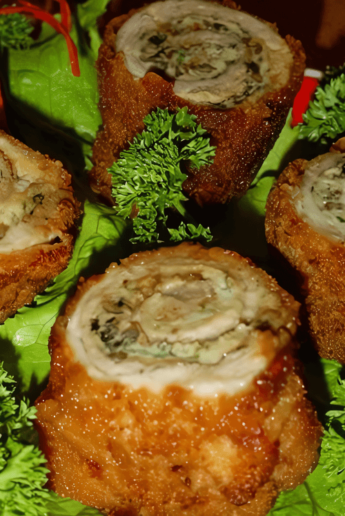 Свиные рулеты с омлетом и грибами – изысканное блюдо европейской кухни, сочетающее нежность свинины, воздушность омлета и аромат лесных грибов. Оно могло возникнуть как вариация традиционных мясных рулетов, вдохновленных французскими или немецкими кулинарными традициями. Блюдо отличается насыщенным вкусом и аппетитной текстурой: сочное мясо гармонично дополняется мягкостью яичного слоя и пикантностью грибов. Панировка придаёт хрустящую корочку, а свежая зелень освежает вкус. Эти рулеты идеально подходят для праздничного застолья или уютного семейного ужина, особенно в сочетании с овощами или легким соусом. Благодаря элегантной подаче, они могут стать главным украшением стола, впечатляя гостей оригинальностью исполнения и богатством вкусовых оттенков.