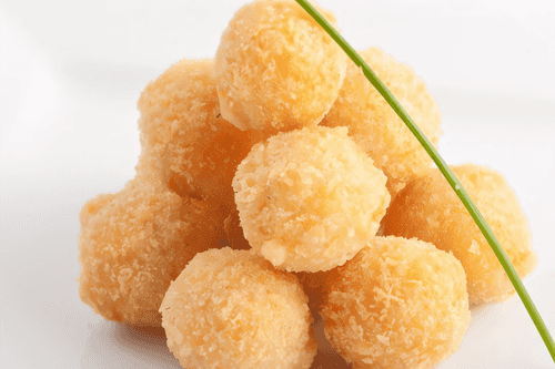 Готовые шарики из сыра выложить на блюдо. Можно обмакнуть их бумагой, чтобы лишний жир ушел.