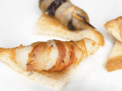 Положить чернослив и гребешки на тосты и подавать.